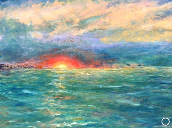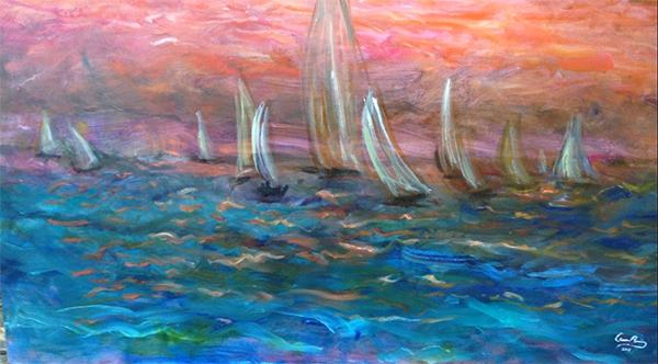 "Puesta de sol con veleros"